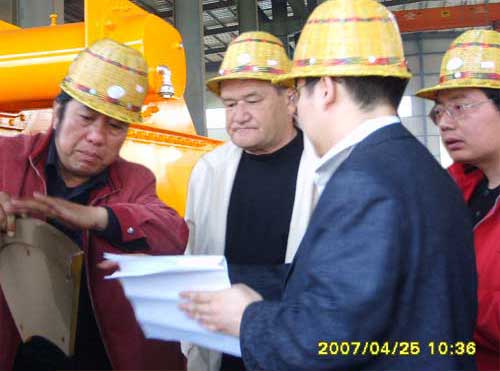 公司領(lǐng)導(dǎo)與客戶商討技術(shù)問(wèn)題 | 公司領(lǐng)導(dǎo)與國(guó)外客人進(jìn)行技術(shù)交流 | 車(chē)間一隅 |