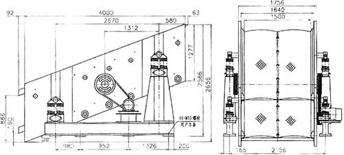 圖6 SZZ21500×4000自定中心振動(dòng)篩安裝尺寸